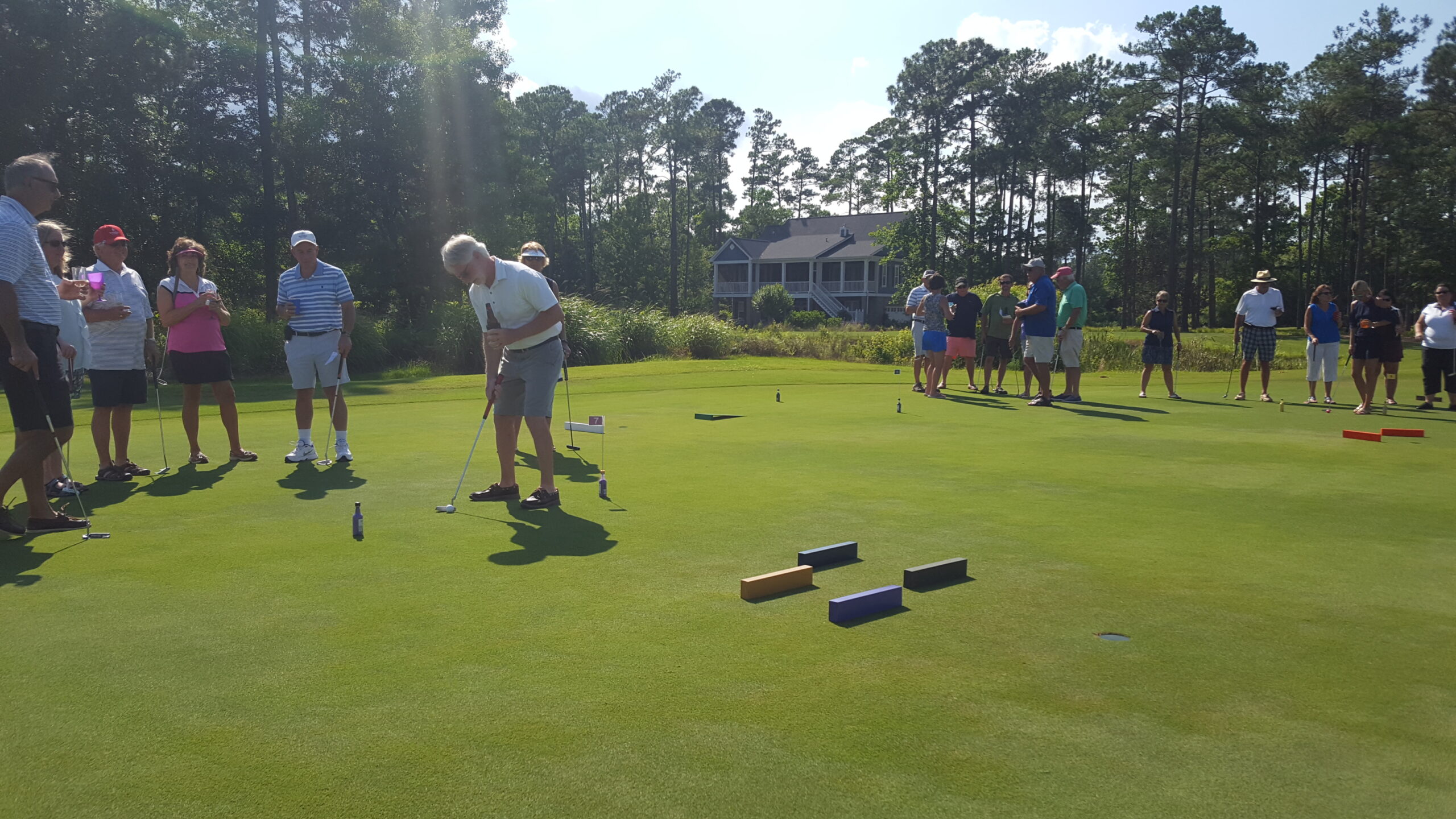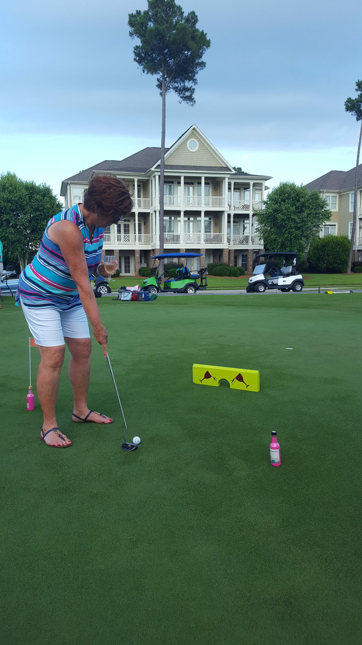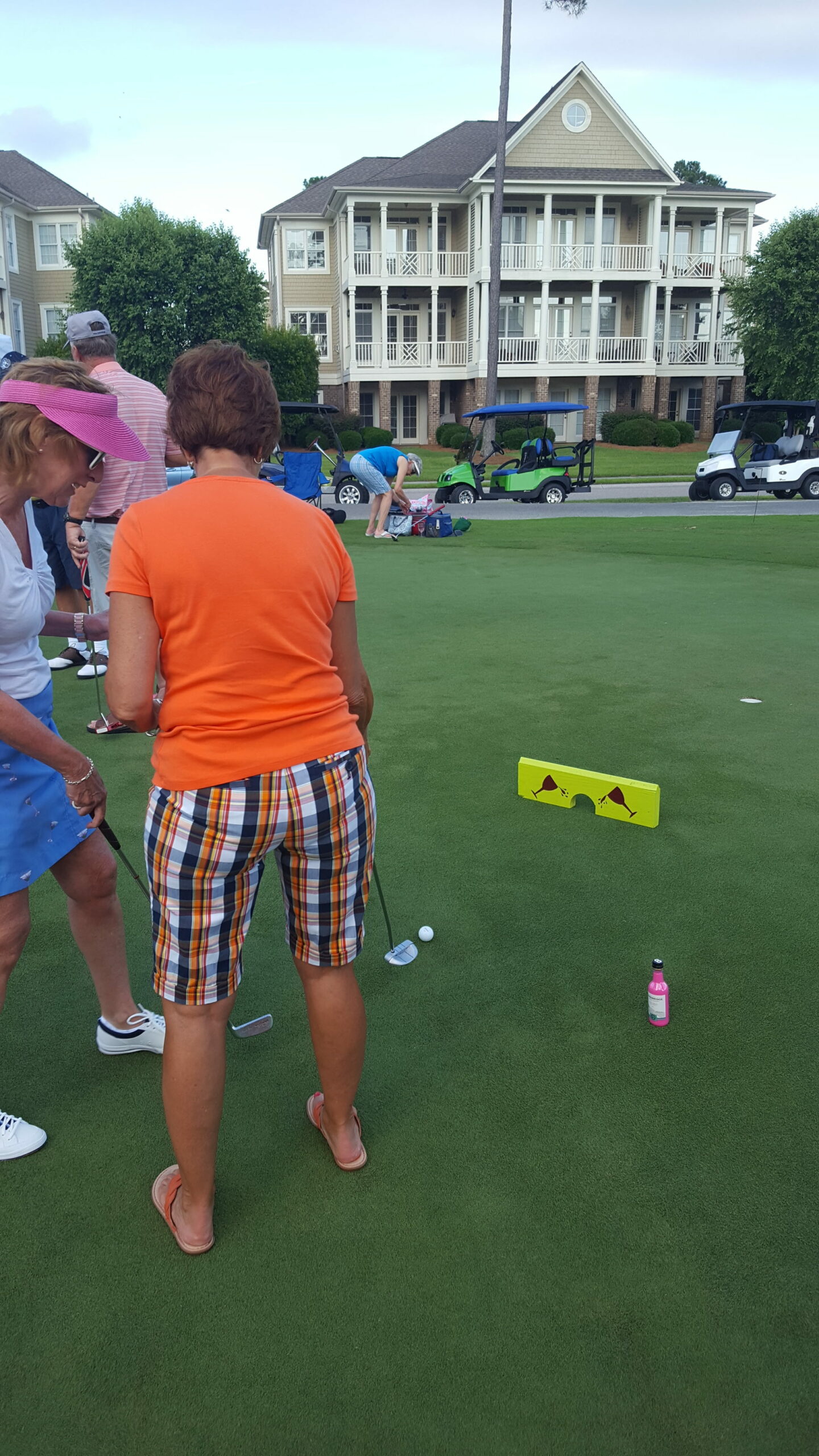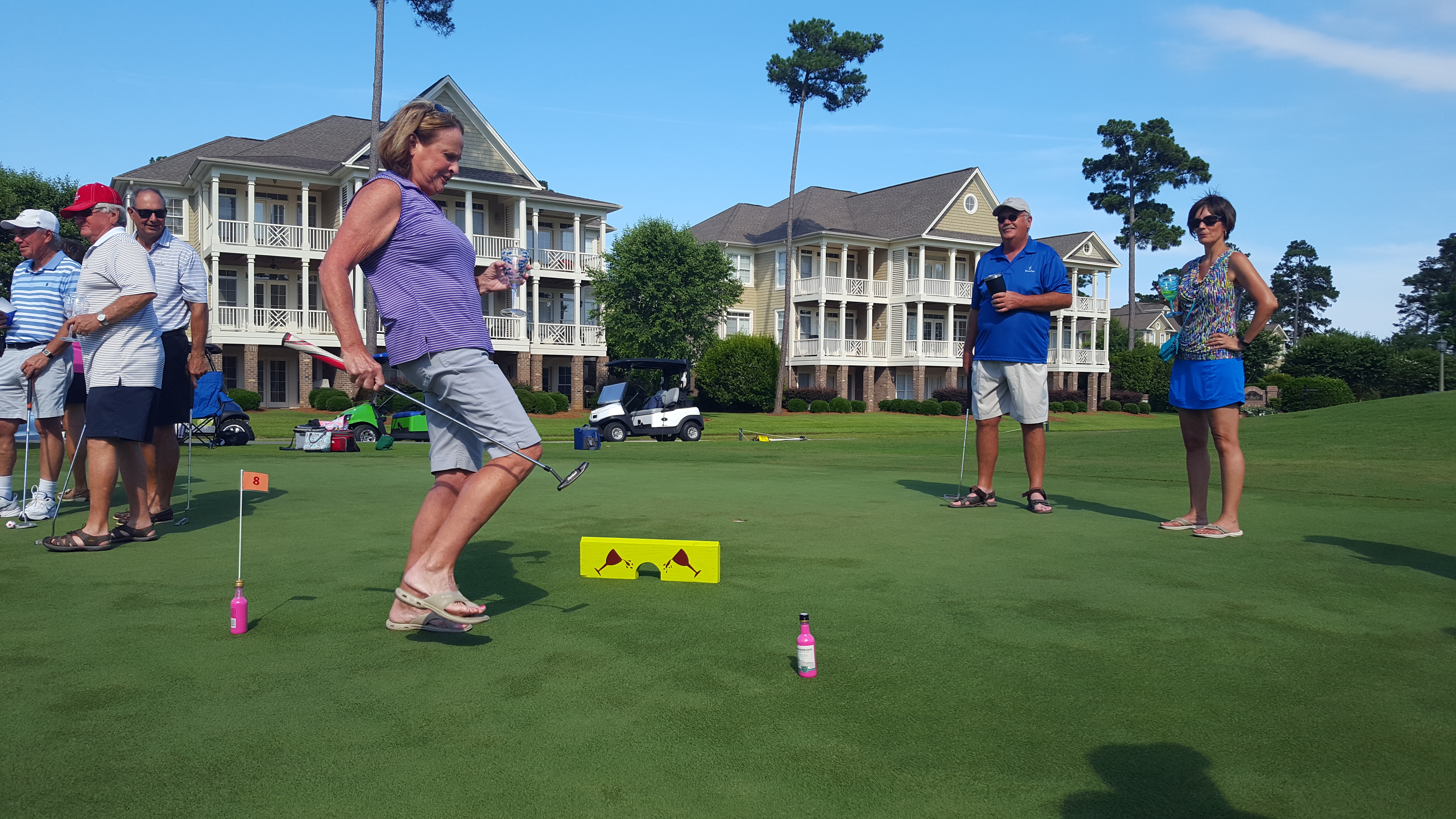 Back by popular demand, on Sunday June 10th, Rivers Edge Golf Club held it’s One Handed Wine Putting Contest. Let me guess we had you at “wine”! The evening was attended by Rivers Edge members, residents and guests joining us from as far as New York to enjoy the festivities of fun, food and fellowship. If you can just image trying to putt with one hand while holding the beverage of your choice through obstacles designed and created by the committees imagination, if putting isn’t challenging enough! The event sounded like so much fun I just had to stop by and soak in the atmosphere. The evening complimented what “life at the Edge” is all about and what makes this community so special to be a part of.