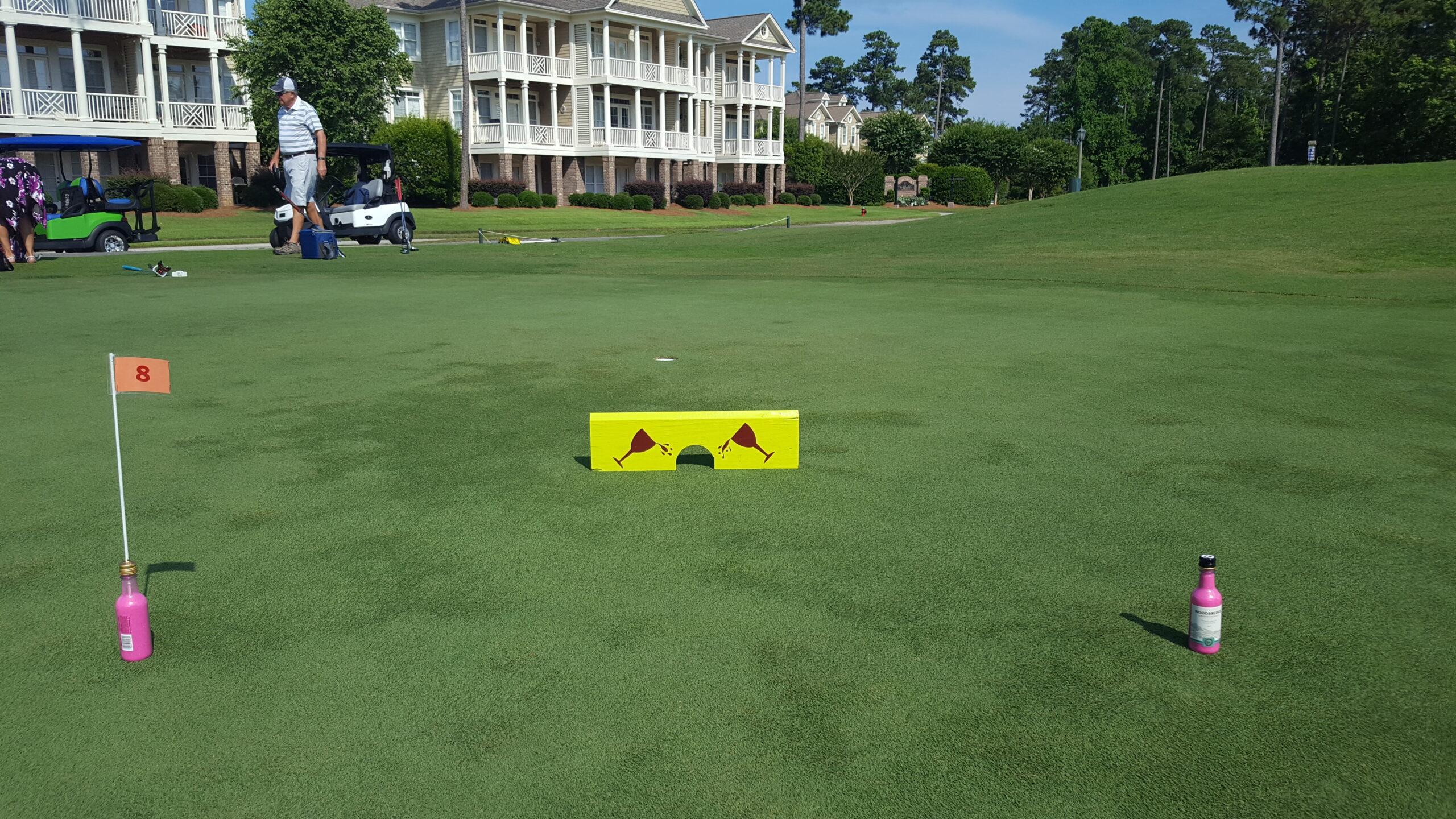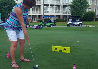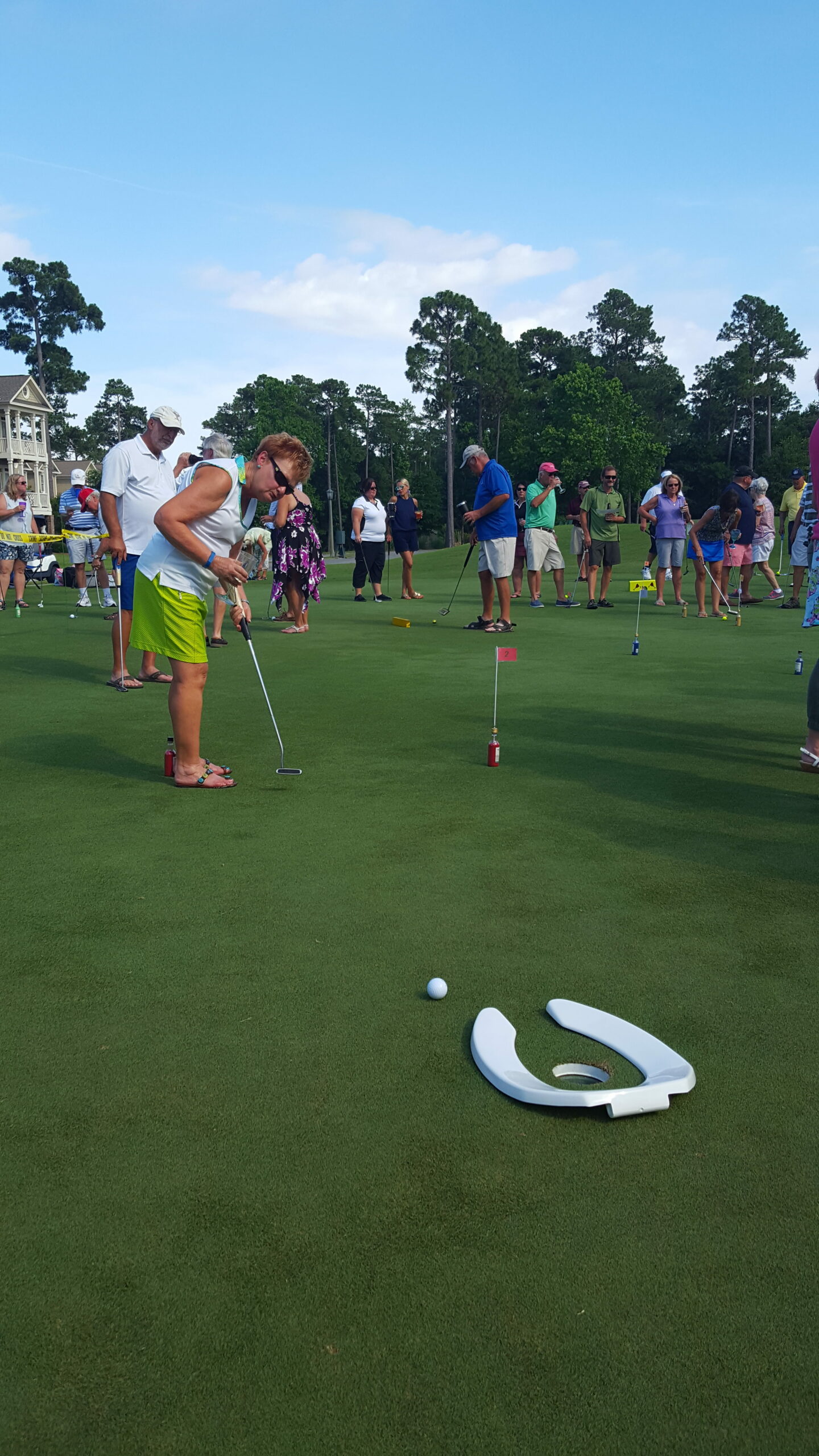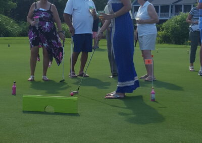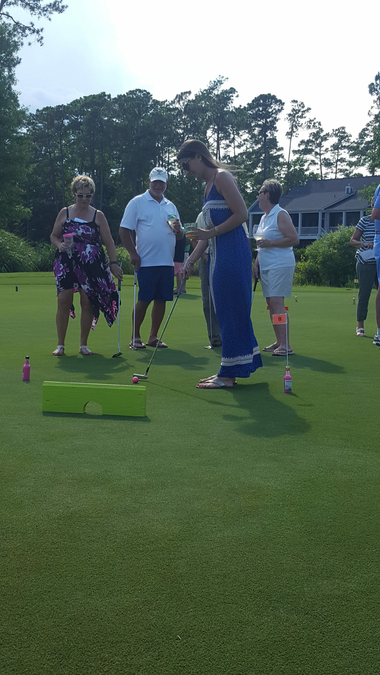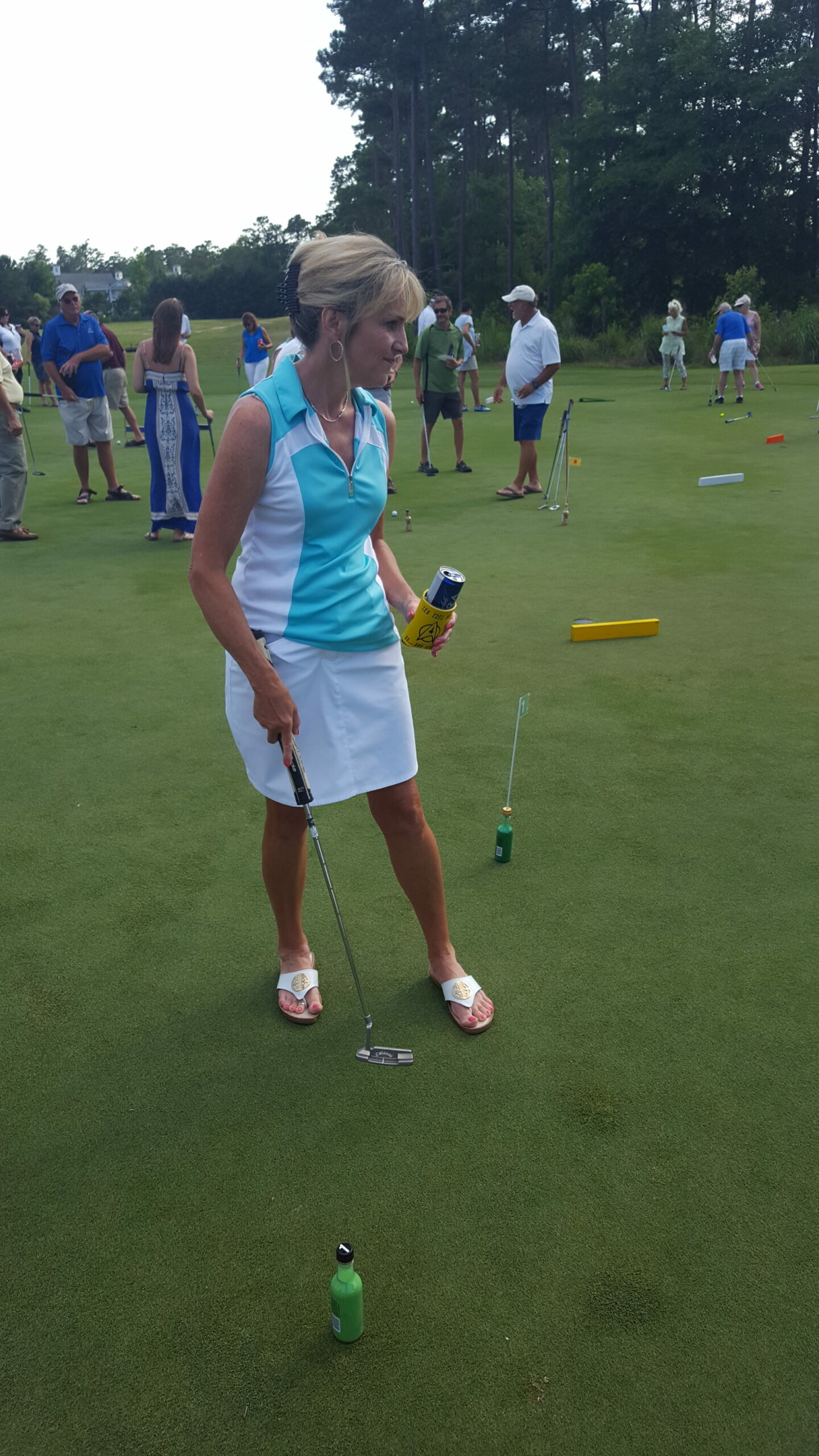 Back by popular demand, on Sunday June 10th, Rivers Edge Golf Club held it’s One Handed Wine Putting Contest. Let me guess we had you at “wine”! The evening was attended by Rivers Edge members, residents and guests joining us from as far as New York to enjoy the festivities of fun, food and fellowship. If you can just image trying to putt with one hand while holding the beverage of your choice through obstacles designed and created by the committees imagination, if putting isn’t challenging enough! The event sounded like so much fun I just had to stop by and soak in the atmosphere. The evening complimented what “life at the Edge” is all about and what makes this community so special to be a part of.