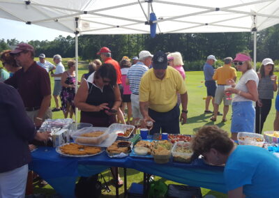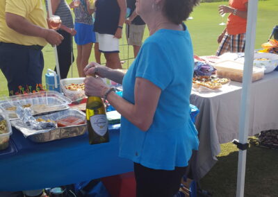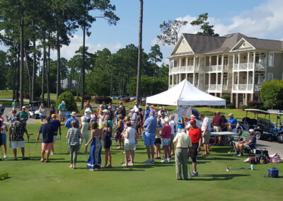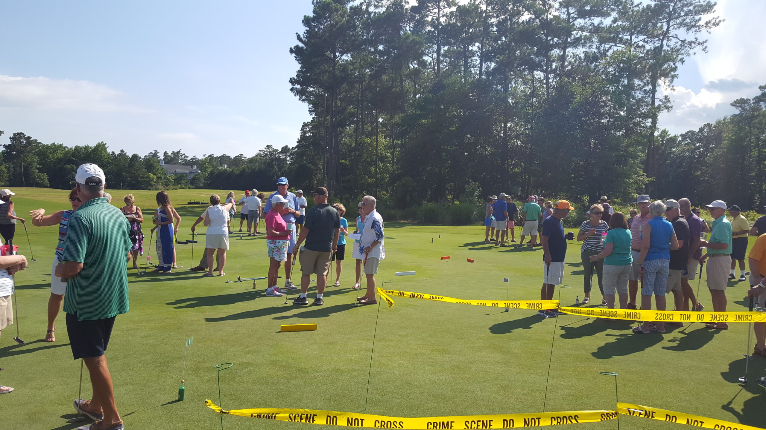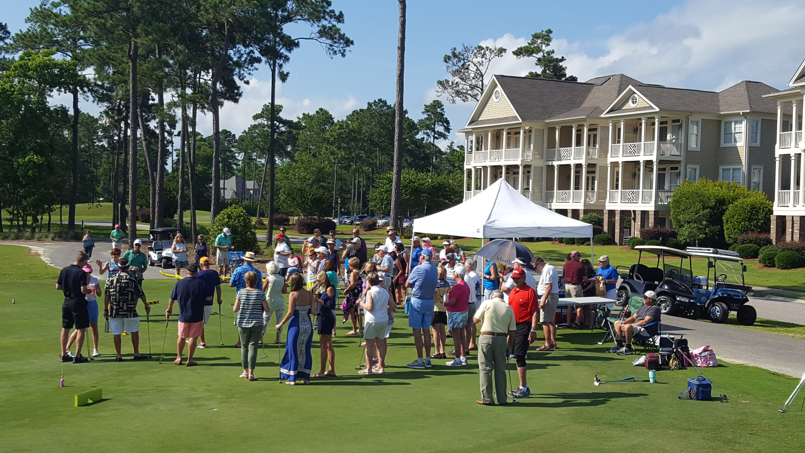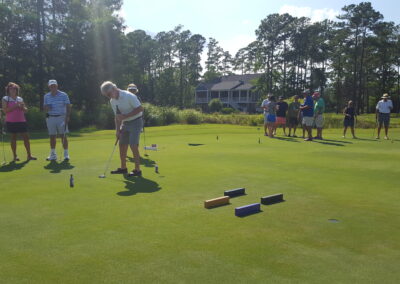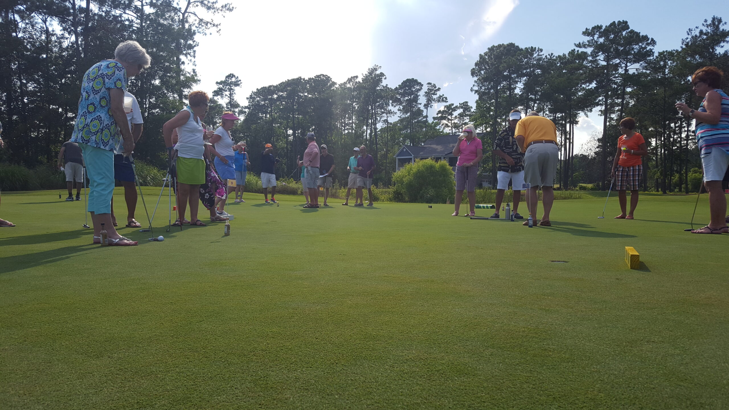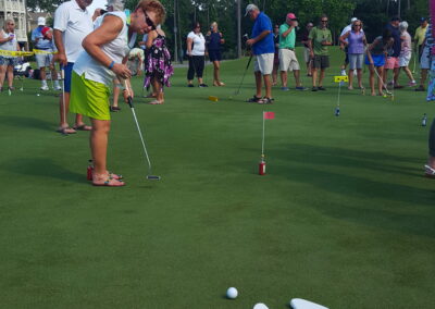 Back by popular demand, on Sunday June 10th, Rivers Edge Golf Club held it’s One Handed Wine Putting Contest. Let me guess we had you at “wine”! The evening was attended by Rivers Edge members, residents and guests joining us from as far as New York to enjoy the festivities of fun, food and fellowship. If you can just image trying to putt with one hand while holding the beverage of your choice through obstacles designed and created by the committees imagination, if putting isn’t challenging enough! The event sounded like so much fun I just had to stop by and soak in the atmosphere. The evening complimented what “life at the Edge” is all about and what makes this community so special to be a part of.
