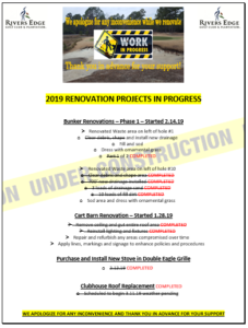 - Bunker Renovations Holes #1 & #10: For those who have played Rivers Edge consistently over the years, you may recall the waste areas to