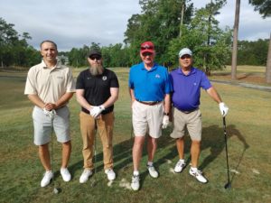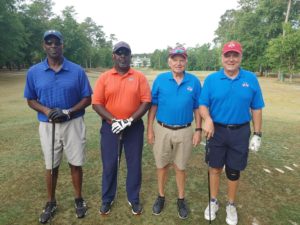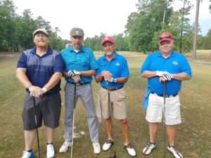 On May 19, 2021, the Rivers Edge Veterans Association (REVA) and the Rivers Edge Golf Club (REGC) hosted a Foursome for Heroes golf outing for Wounded Warriors and Disabled Veterans. The Foursome for Heroes program is sponsored by Operation North State. Five W/W and D/Vets participated along with two ONS volunteers and five REVA members. A fun day of golf was had by all, followed by lunch and camaraderie at The Double Eagle Grill. The five Heroes were presented REVA Honor Coins, Poppy Pins, and golf towels from REGC. This is REVA’s third Foursome for Heroes Golf Outing and we hope to have more outings in the future.